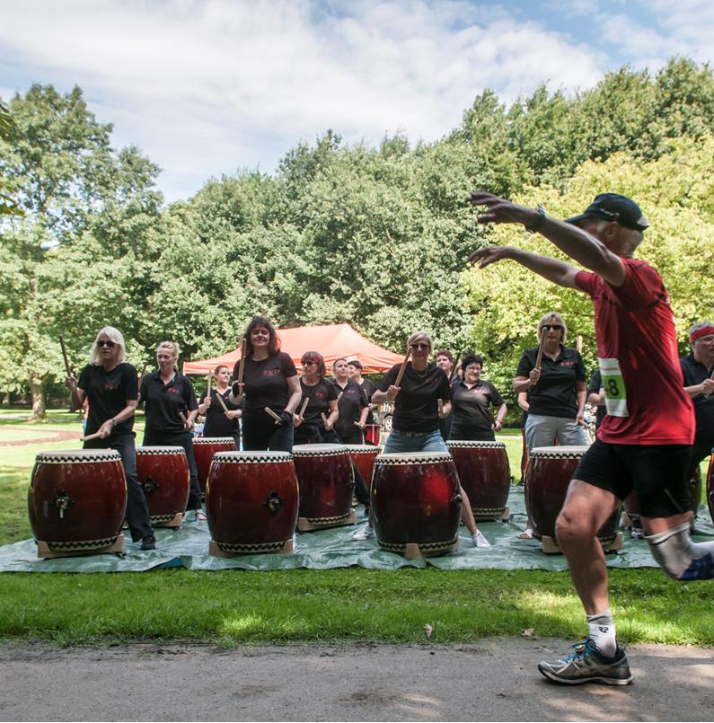 Sparkassenlauf am 14.08.2013. Die Trommler unterstützten durch den Rhythmus der Trommeln die Läufer. Eine Buchung für 2014 erfolgte noch vor Ort. -Artikel im Lokalkompass- |